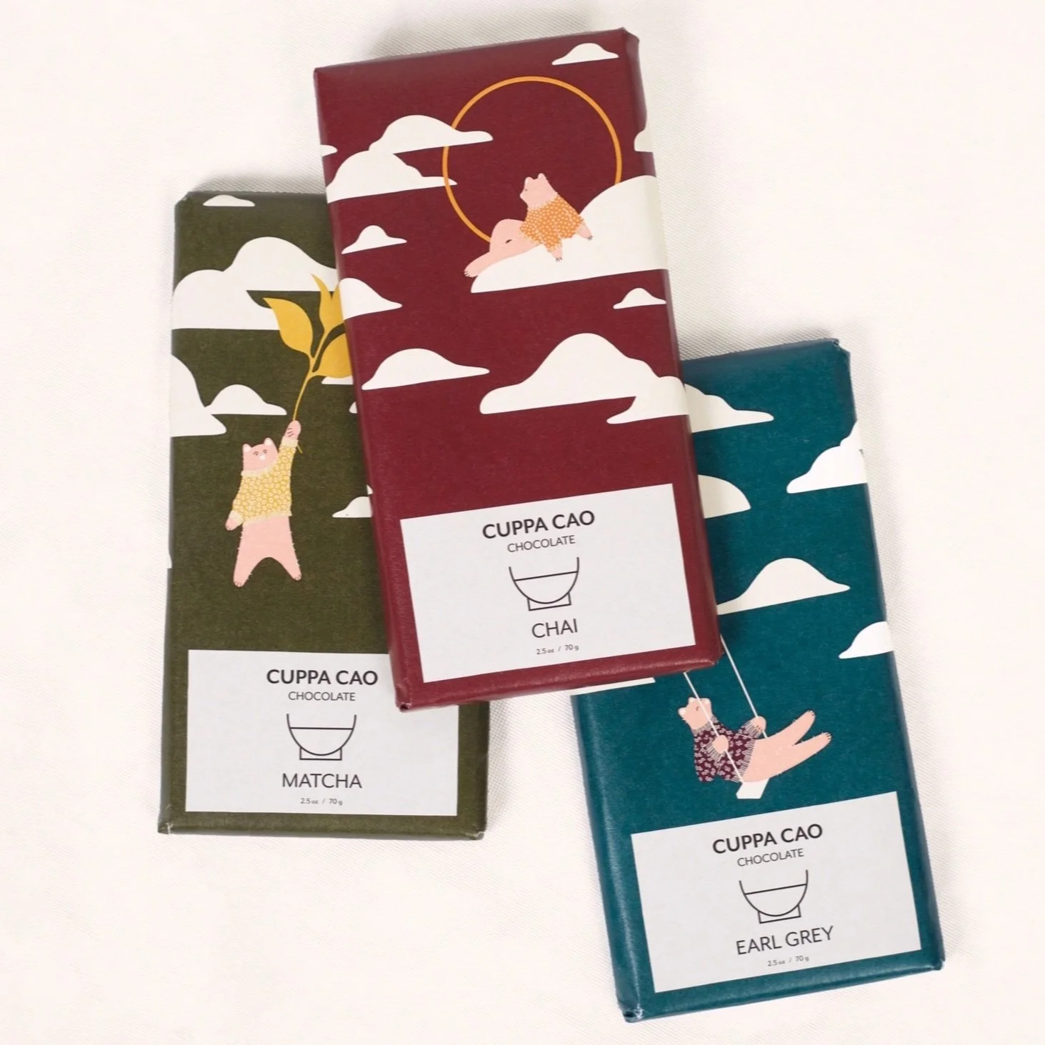 Package design and illustrations for a tea-infused, chocolate bar company.